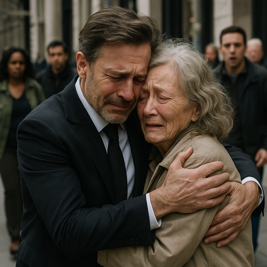 Word of the reunion leaked when a bystander snapped a photo of Daniel and Margaret embracing outside the gala. The image went viral overnight: the billionaire in a tailored tuxedo, clutching the frail frame of an elderly woman, both weeping as if decades collapsed into a single second.