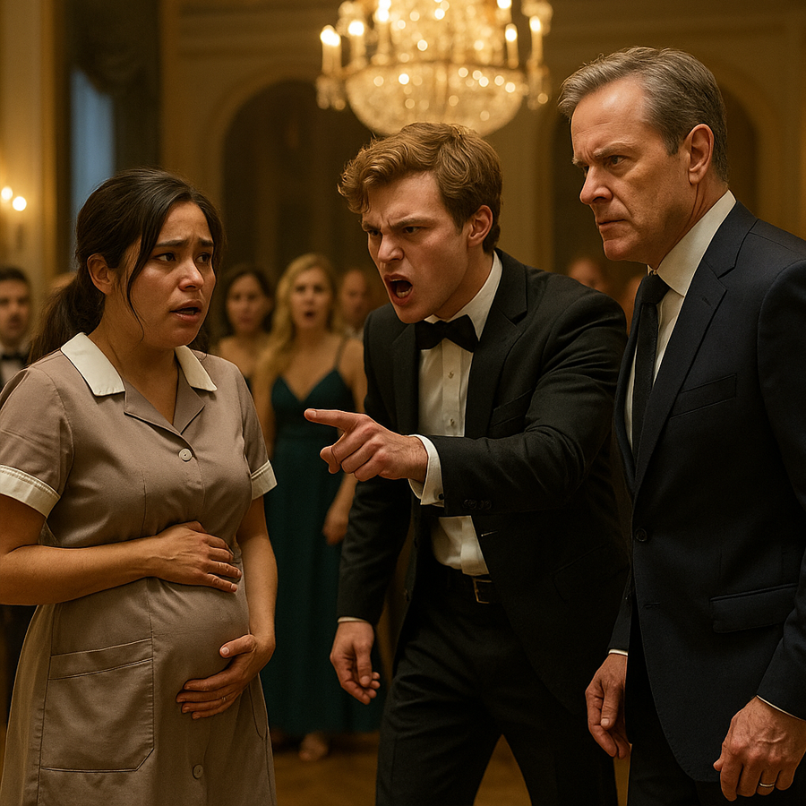 Brandon staggered backward. His face drained of color as reality sank in: the woman he had just humiliated, the pregnant maid he mocked, was his father’s new wife—and the child she carried was his own sibling.