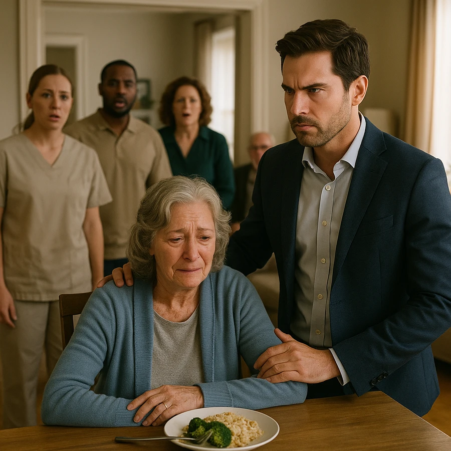The caregivers, shocked, stammered excuses, but Daniel was already at his mother’s side, pulling the plate away and embracing her. Margaret whispered through sobs, “I didn’t want to worry you.”