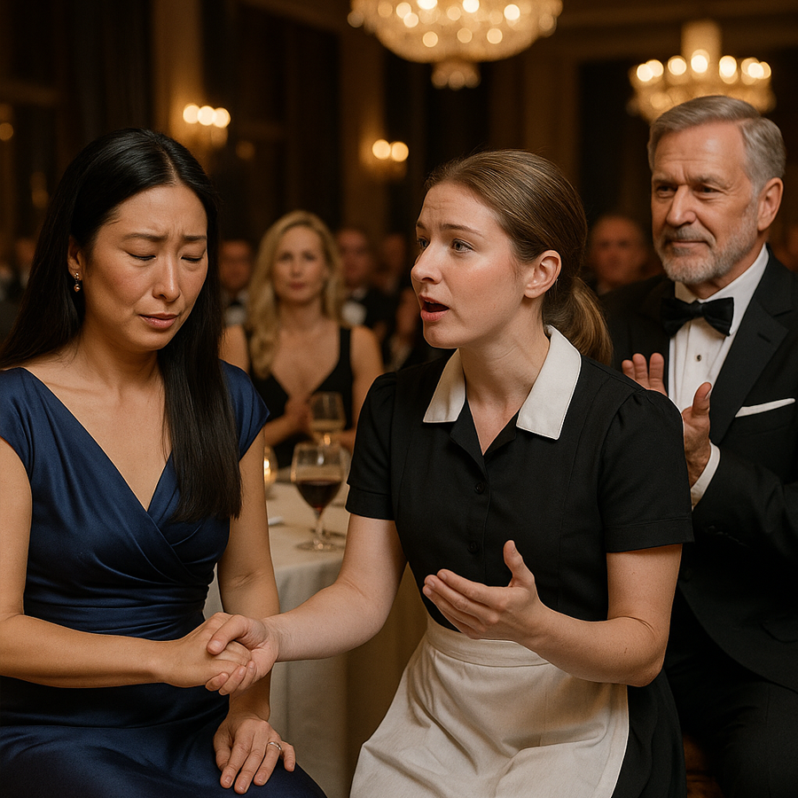 The billionaire host attempted to converse, but she answered with graceful Japanese sentences, smiling politely, unaware of the confusion she was causing. The room filled with murmurs. Some guests whispered, others rolled their eyes, as if her language barrier made her out of place in the grandeur of the Western gala.