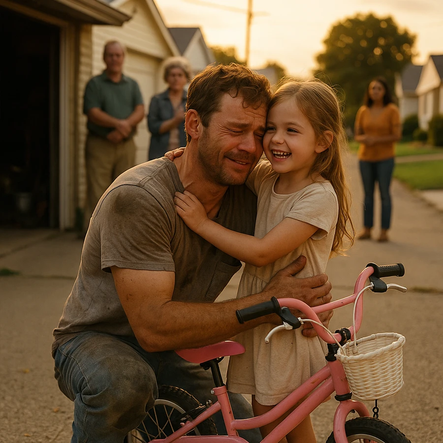 And every time she rode that pink bike down the street, the neighbors didn’t see a poor mechanic anymore. They saw a father who mattered more than gold.