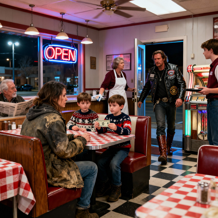 She Had Only $20 for Christmas Eve Dinner for Her Twins—Until a Leather-Clad Hells Angel Walked In, Whispered One Name to the Manager, and Suddenly the Whole Restaurant Went Silent, Then Smiled in Disbelief as bill vanished and surprises appeared