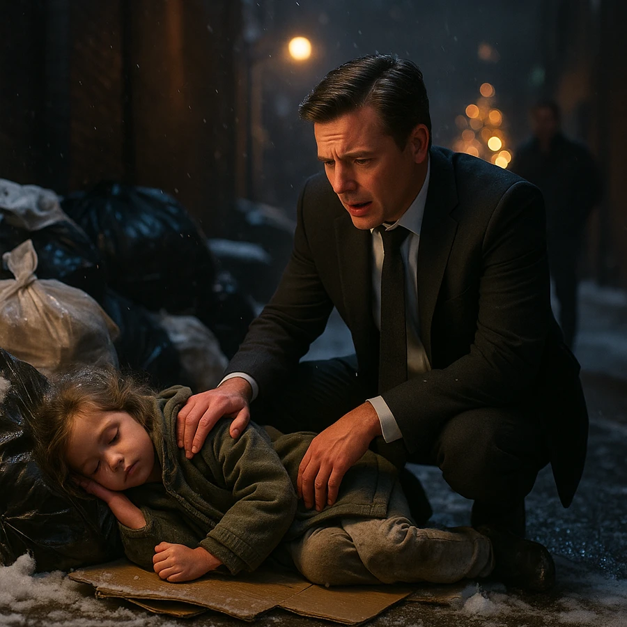 In the alley between two restaurants, nestled among piles of trash bags, was a small figure. At first he thought it was a stray dog, but as he ordered the driver to stop, he realized it was a child—a little girl no older than six or seven, curled up on cardboard, her tiny arms hugging herself for warmth.