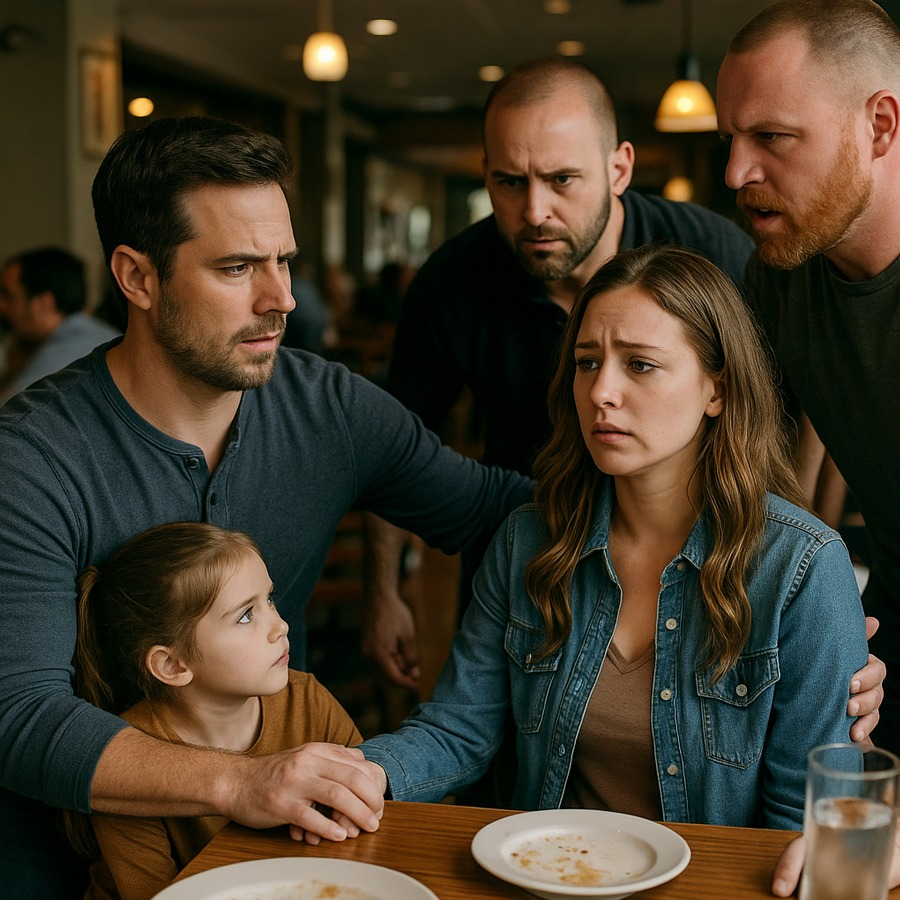 The restaurant fell silent. Patrons emerged from hiding, staring at the unlikely hero — a father with blood on his lip, standing tall, shielding both his daughter and the waitress.