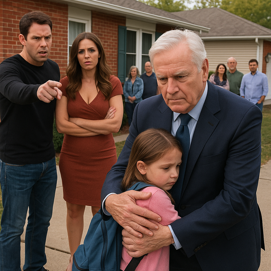 Beside him stood his lover, a woman with cold eyes and a mocking smile. Together, they ordered the girl to leave, her small hands clutching a worn-out backpack. “You don’t belong here anymore,” the stepfather shouted, his voice filled with bitterness.