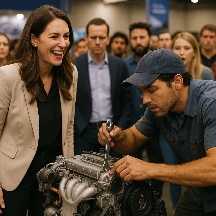 The auto expo hall buzzed with the energy of a hundred conversations, flashing cameras, and gleaming machines. It was the annual engineering showcase where inventors, designers, and mechanics all gathered to marvel at the latest technology. Among the crowd was Isabella Moore, a celebrated engineer known for her sharp mind, sharp tongue, and her cutting-edge designs.