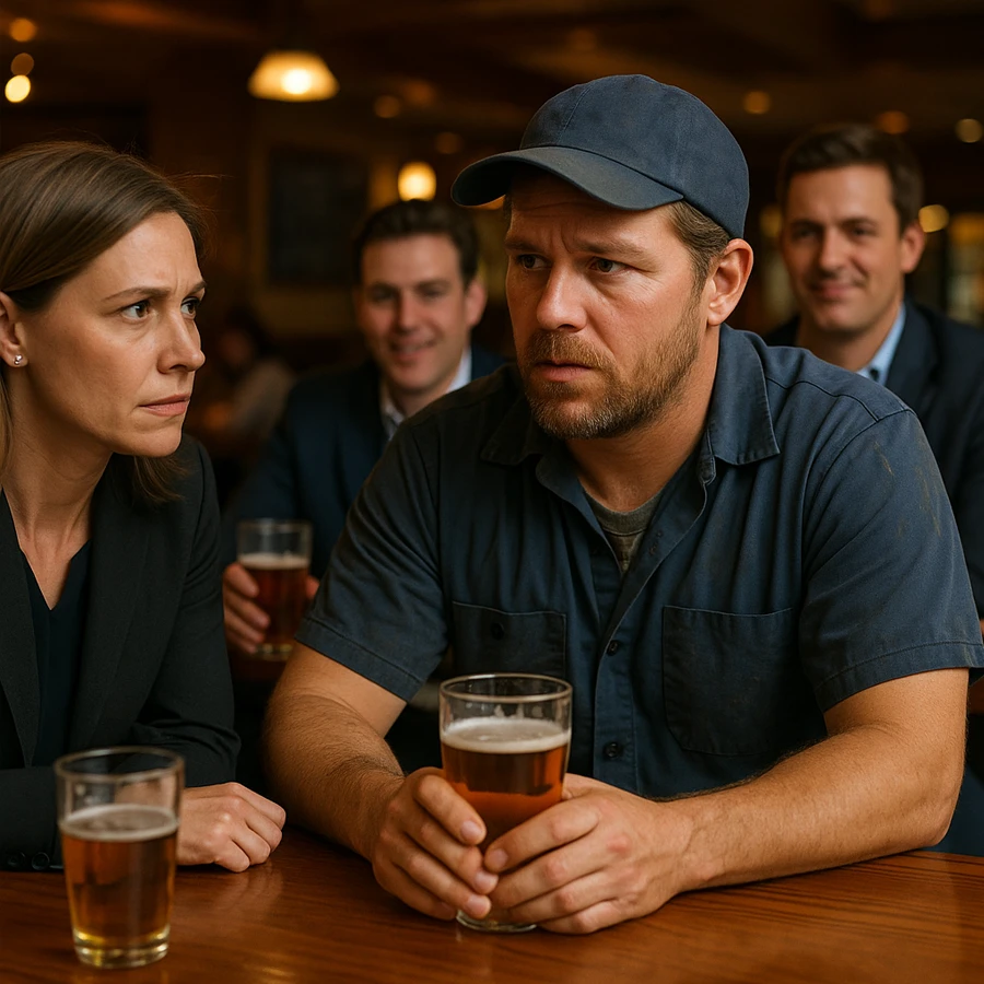 The bar was crowded, alive with laughter, the clinking of glasses, and the murmurs of city workers unwinding after a long day. At a corner stool sat Daniel Brooks, a single father in his late thirties. His hands were rough, his shirt stained with grease, his face weary from hours spent at the small-town auto shop where he worked.