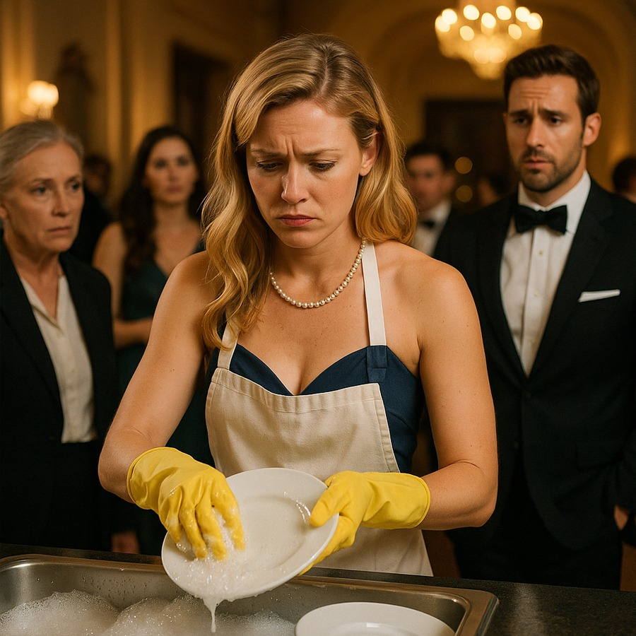 In moments, Isabel was dragged toward the kitchen, handed a stack of dirty plates, and told to start washing. The humiliation was deliberate. The crowd chuckled at the sight of her scrubbing while they sipped champagne.