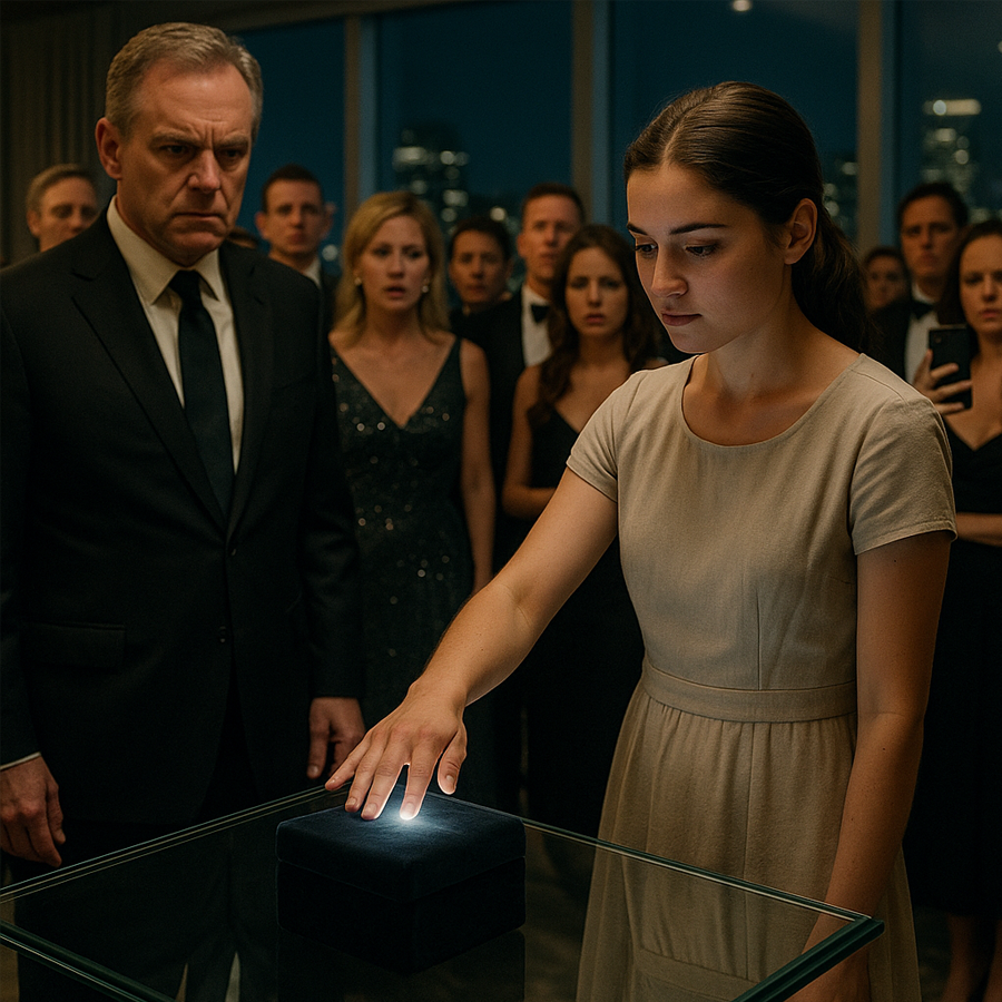 Whitmore’s smug grin faltered. His eyes widened—not with delight, but with shock. He had not expected anyone to dare, least of all the maid’s daughter. And what terrified him most was not that she had touched the box, but that the box had responded.