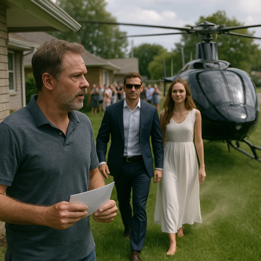 Not a news chopper. Not a medical evacuation. A sleek, black helicopter descending directly onto his property. Neighbors poured out of their homes, pointing, filming with their phones, shouting over the storm of blades.