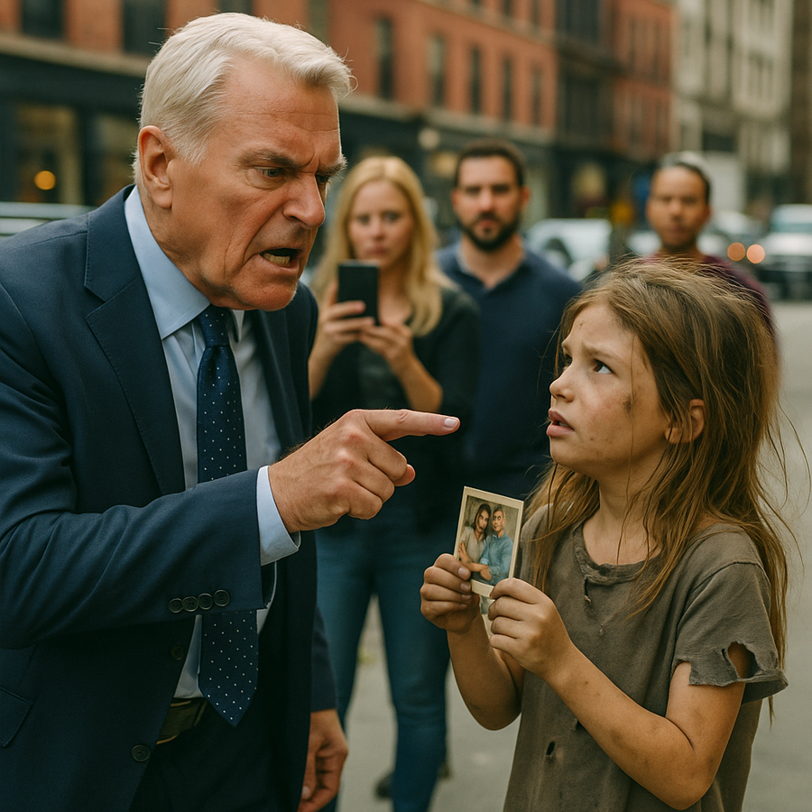 People stopped to watch, shocked by his harsh words. The girl, trembling, lifted her chin and stared at him with unexpected courage.