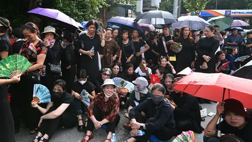 Hàng dài người lớn tuổi xếp hàng đăng ký học dưỡng sinh miễn phí