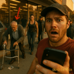 The first crash wasn’t a punch—it was the clatter of an aluminum walker snapping backward on concrete, followed by a small white square spinning through a rainbow sheen of spilled gas. The phone kept recording. The whole parking lot held its breath.