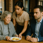 The next morning, I stood at the kitchen window, pouring cereal into three mismatched bowls, when my stomach flipped.